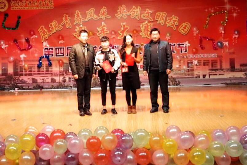 | 团委赵露露老师、护理系王新老师为获得三等奖选手颁奖 |