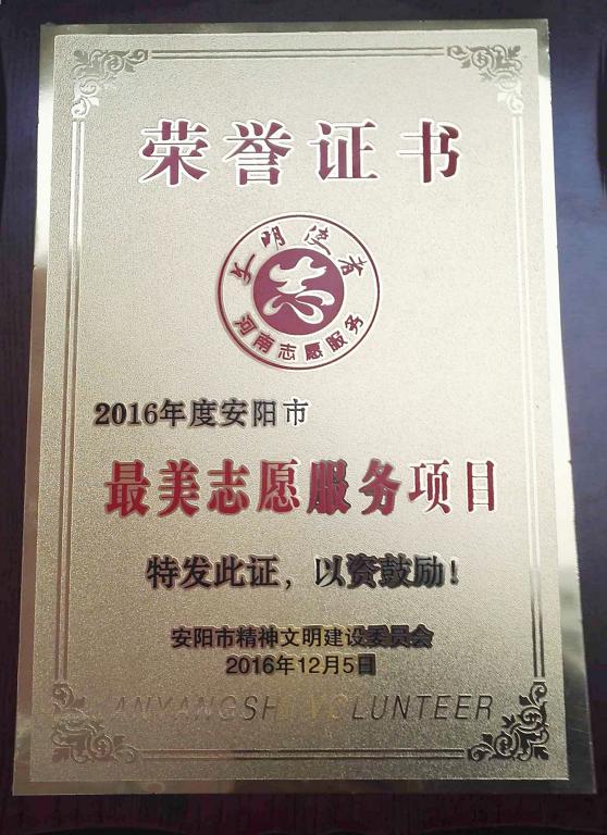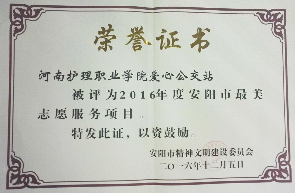 12月5日,从安阳市“五个最美”志愿服务表彰大会上传来喜讯,我院“爱心公交站”志愿服务项目荣获“安阳市最美志愿服务项目”,网络文明传播小组、医疗保健志愿服务队荣获“安阳市优秀志愿服务组织”荣誉称号。
