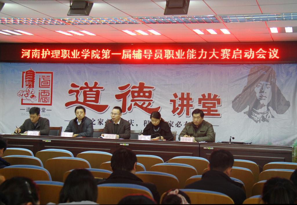 12月7日下午,我院在学术报告厅召开星空XK体育第一届辅导员职业能力大赛启动会议。副院长钟会亮出席并讲话;药检系总支书记常慧敏、护理系总支书记王昆仑、医技系总支书记窦俊峰以及近80名职辅导员、学生管理工作人员参加会议。会议由学生处副处长金志利主持。