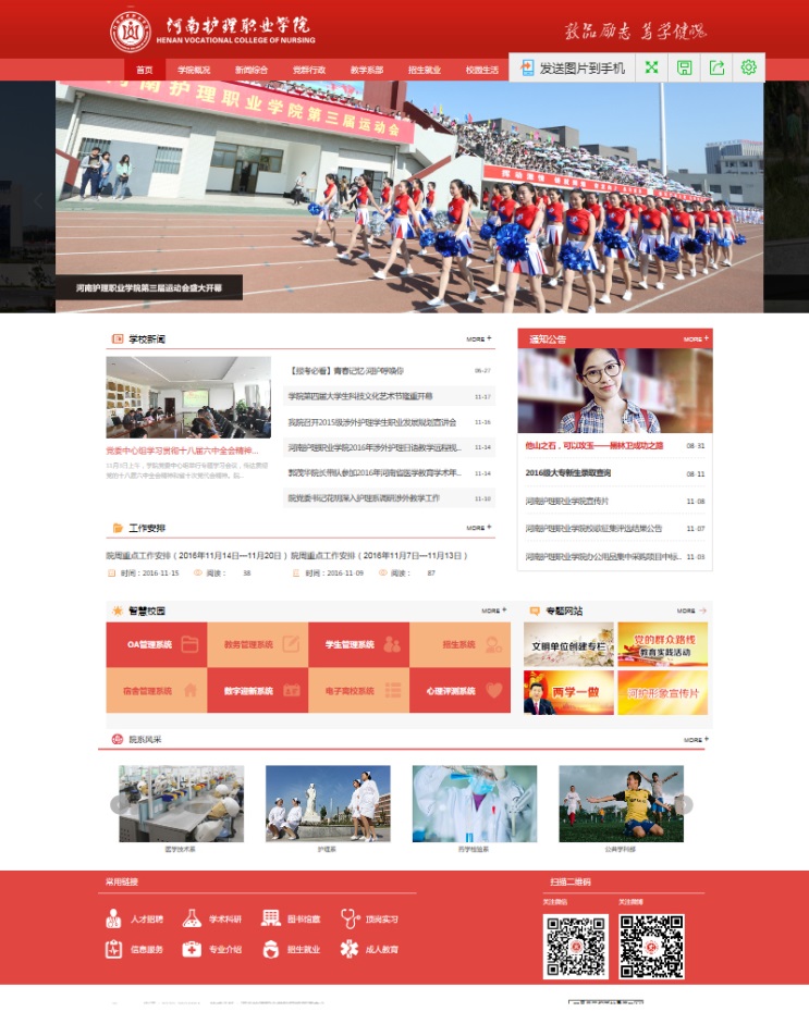 在我院迎来65周年华诞之际,我院新版门户网站正式上线试运行。新版网站增加了“智慧校园”版块和“院系风采”版块,更加突出展现了我院智慧校园建设以及各系部建设情况。