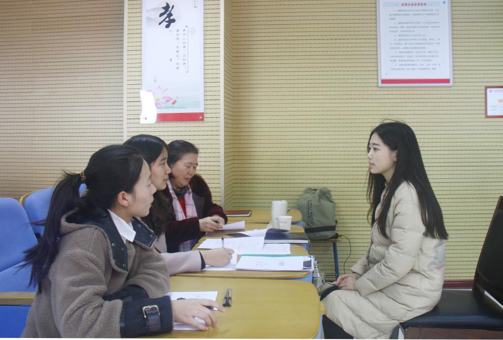 河南人人检科技有限公司总经理李文利和综合部经理马俊玲分别介绍了公司概况以及此次招聘岗位的主要职责和薪酬待遇。随后,招聘单位在多功能报告厅分两组进行了面试。