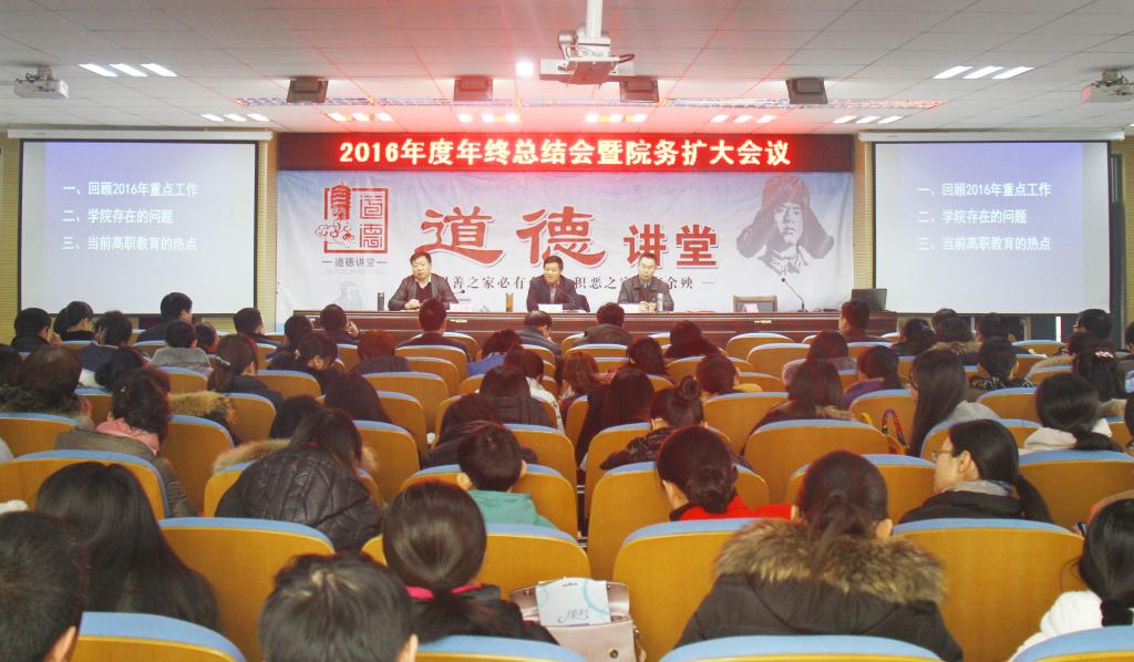 会议传达了全省卫生与健康大会精神、全省卫生计生工作会议精神、近期关于安全稳定和法制工作的会议精神,通报了上级关于维稳安全和依法治校工作的检查情况,全面总结2016年度学院重点工作,提出2017年工作思路,并对2017年工作提出新要求。