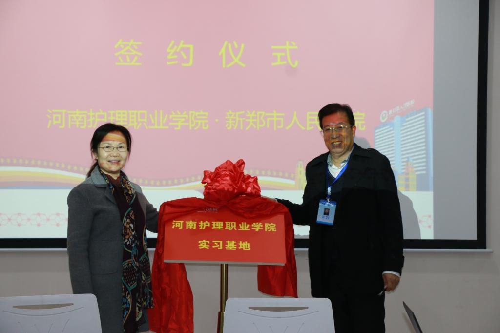 3月22日上午,我院教学副院长张淑爱与新郑市人民医院院长贾朝京分别代表学院和医院正式签订毕业实习基地协议书,并共同为实习基地揭牌。新郑市人民医院副院长王永强主持揭牌仪式。