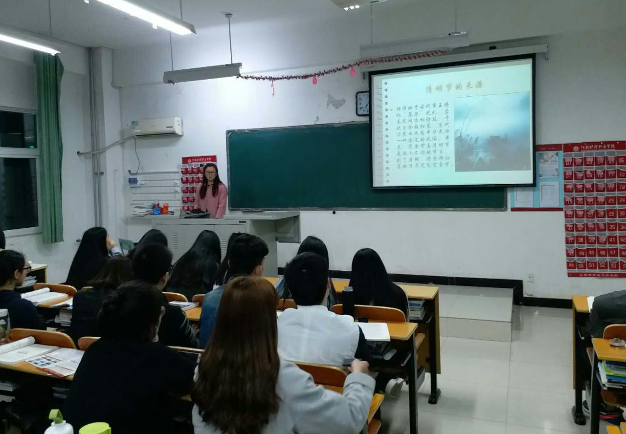 各班通过交流节日资料,学习清明文化,讲革命先烈的感人事迹,诵读中华经典和革命诗文,撰写活动心得体会等,弘扬中华民族优秀文化和传统美德,进一步引导当代大学生接受革命传统教育,继承先烈遗志、珍惜幸福生活、立志报效祖国。