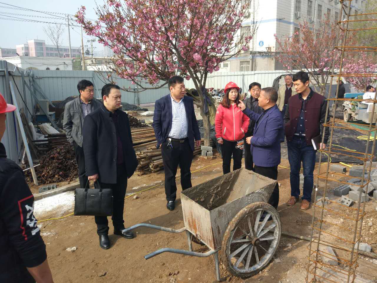 为进一步推进家属院老干部活动中心工程建设进度,4月6日上午,副院长王家桥带领后勤处处长万卫党及相关人员到家属院老干部活动中心建设工地进行调研。在施工现场,王院长认真听取了建设方负责人汇报,并对老干部活动中心工程形象进度进行了察看。目前该工程已完成砌墙,正准备打圈梁,全部工程预计在五月中旬竣工。王院长要求施工方要严格按照工程规范施工,结合我市当前扬尘治理实际,合理安排工期,在保证质量的前提下,加快工程进度,保证老干部活动中心如期交付使用。万处长要求工程监理做好旁站监理记录,严格监督,同时要求施工方倒排工期,做好工作台账。