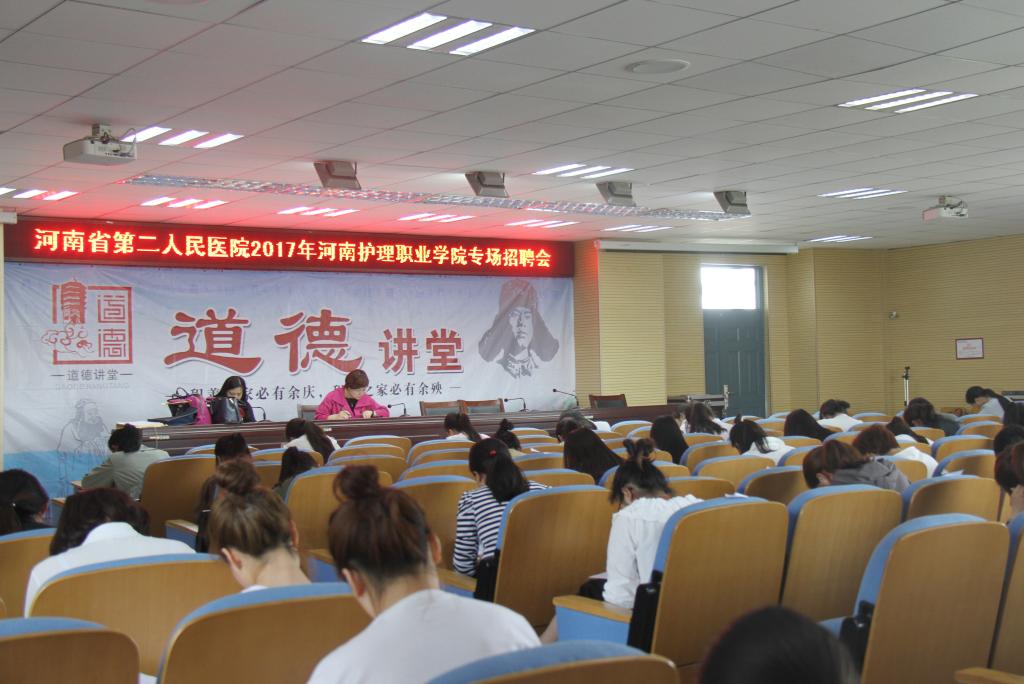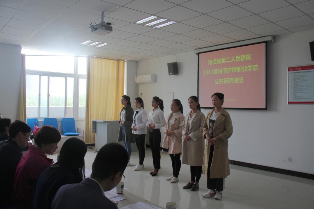 4月17日上午,河南省第二人民医院何平院长一行9人来我院举行专场招聘会。经过面试、笔试等程序,20名2017届毕业生脱颖而出,成功被河南省第二人民医院录用。