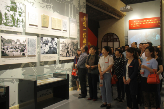 在“光辉历程”展厅,全体党员面对党旗庄严宣誓,重温入党誓词,决心 铭记誓言,不忘初心,继续前行。