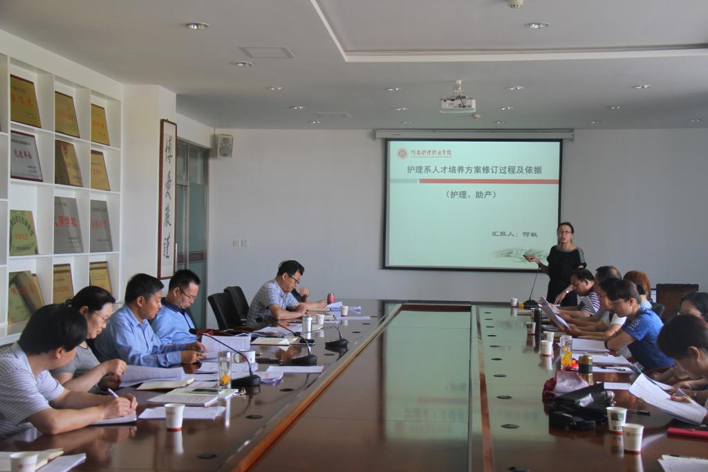 会上,教务处处长朱秀敏、护理系主任何敏、医学技术系主任姚延明、药学检验系主任刘芳君分别就专业人才培养方案修订情况、特色与亮点、专业培养目标、教学进程表安排、专业特色课程设置与调整、公共选修课程安排、考核方式等进行了汇报。学术委员会、教学工作委员会的委员们针对汇报情况进行认真研讨和审议。审议期间,大家畅所欲言、气氛热烈,从宏观和微观角度对各专业人才方案修订提出宝贵意见和建议。