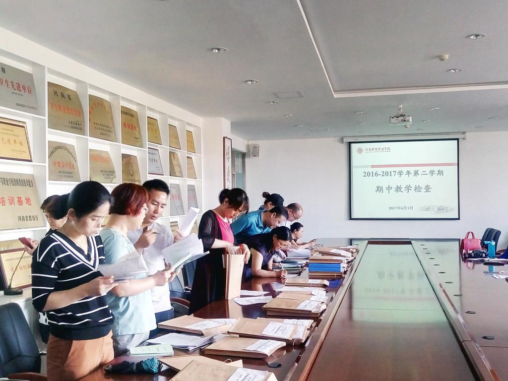 为进一步加强我院对教学质量的监控,切实做到以检查促教学,以检查促规范、以检查促学风,6月1日下午,教务处,各系部负责人,教学工作委员会成员及教学干事联合组成检查组对本学期教学情况进行专项检查。