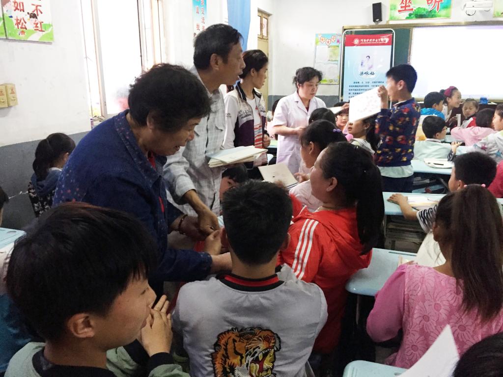 教室里早早地挤满了来听课的学生,他们见到老同志们的到来热情高涨,掌声阵阵。学院退休老教师、眼科专家梁咏梅首先给孩子们进行爱眼知识宣讲。梁老师讲解了近视的形成原因,使孩子们了解眼睛的构造和用途,分析了生活中各种危害眼睛的不良行为,并编出顺口溜和儿歌,让大家掌握预防近视的科学方法,在日常生活和学习中如何保护好自己的眼睛。活动当中气氛热烈,梁老师还通过现场讨论、提问等形式,与孩子们互动,解答大家的疑惑和问题。