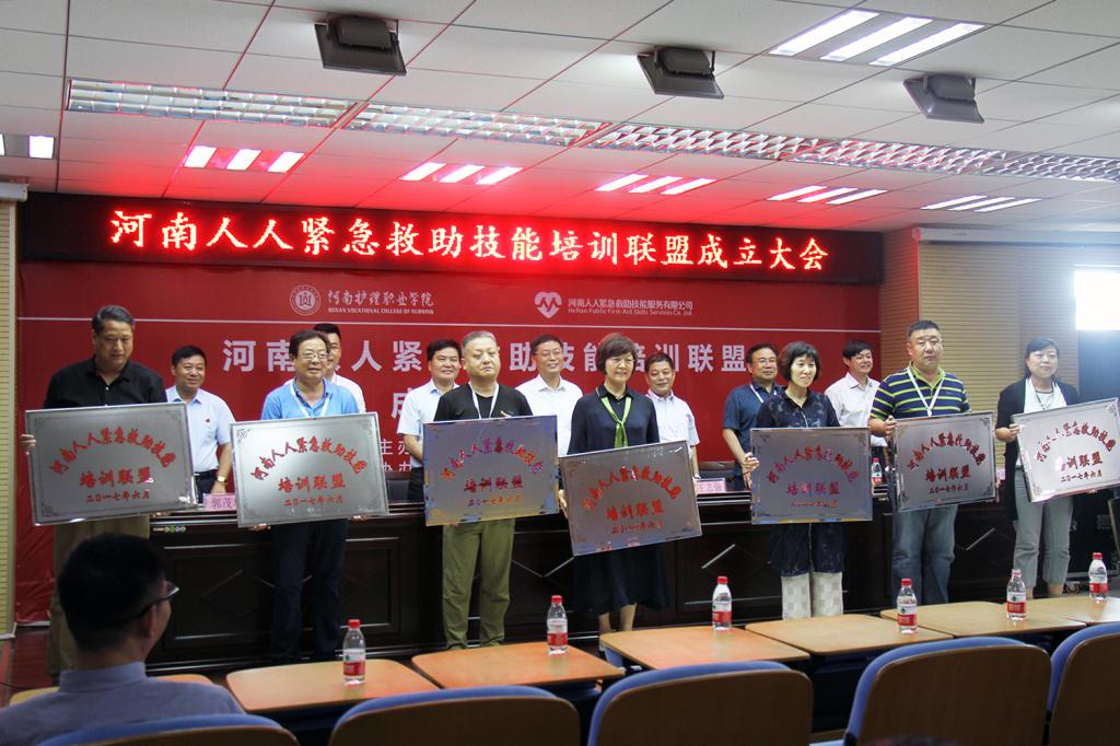 本次会议还举行了河南人人紧急救助技能培训联盟启动仪式,并分别为25家联盟成员单位授牌。