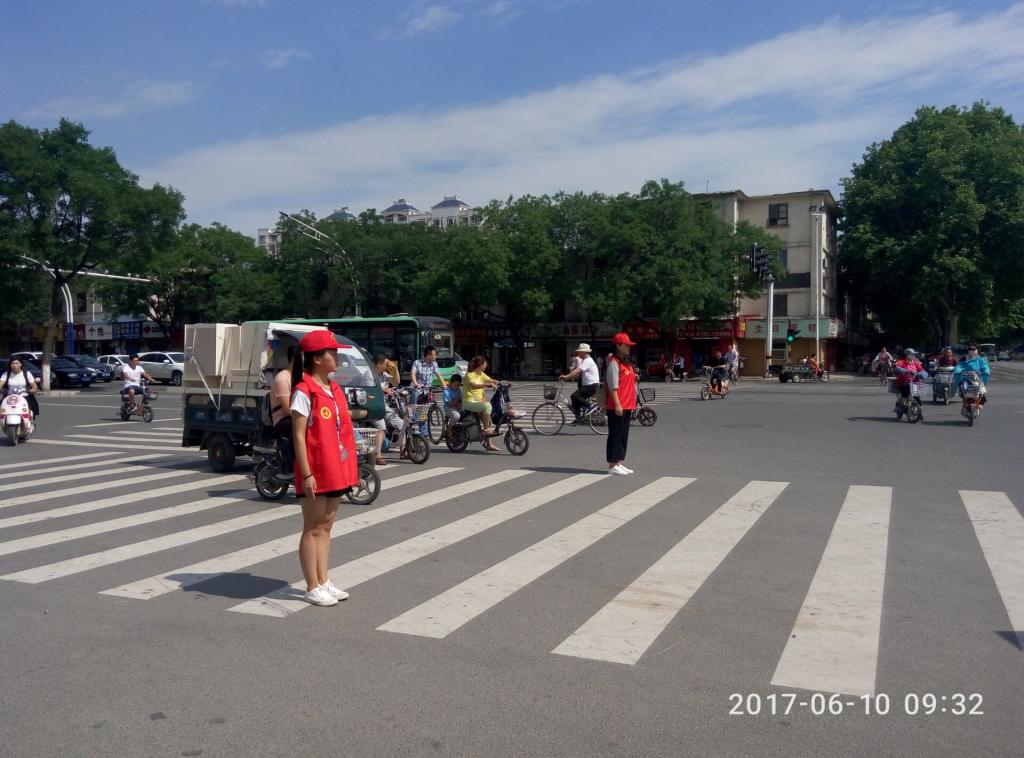 6月11日起,院团委将于周末组织青年志愿者前往安阳市中华路与文峰大道交叉口、文明大道与彰德路交叉口开展文明交通志愿服务活动。志愿者们挥动一面面小红旗对不文明行为进行耐心劝导,同时为老、弱、病、残等特殊行人提供帮助;在公交站点,引导市民有序乘车,同时积极为市民讲解文明城市理念,普及文明礼仪知识,提高市民对创建文明城市的普及度、认同度、参与度。