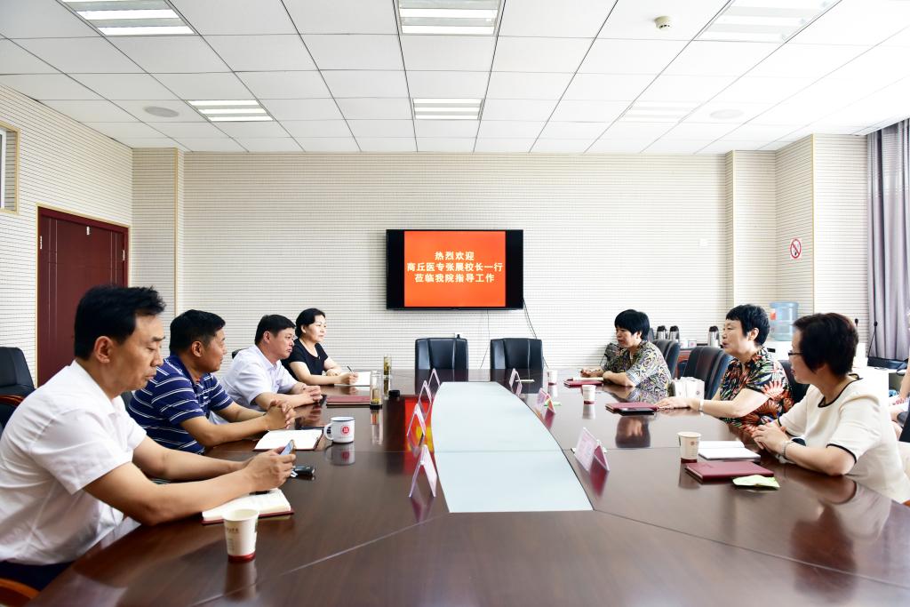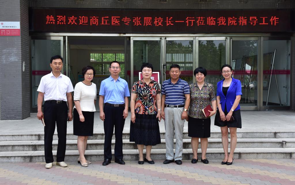 6月26日上午,商丘医学高等专科学校校长张展、纪委书记田华、办公室主任史桂荣等一行三人莅临我院参观交流。