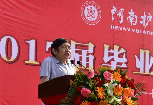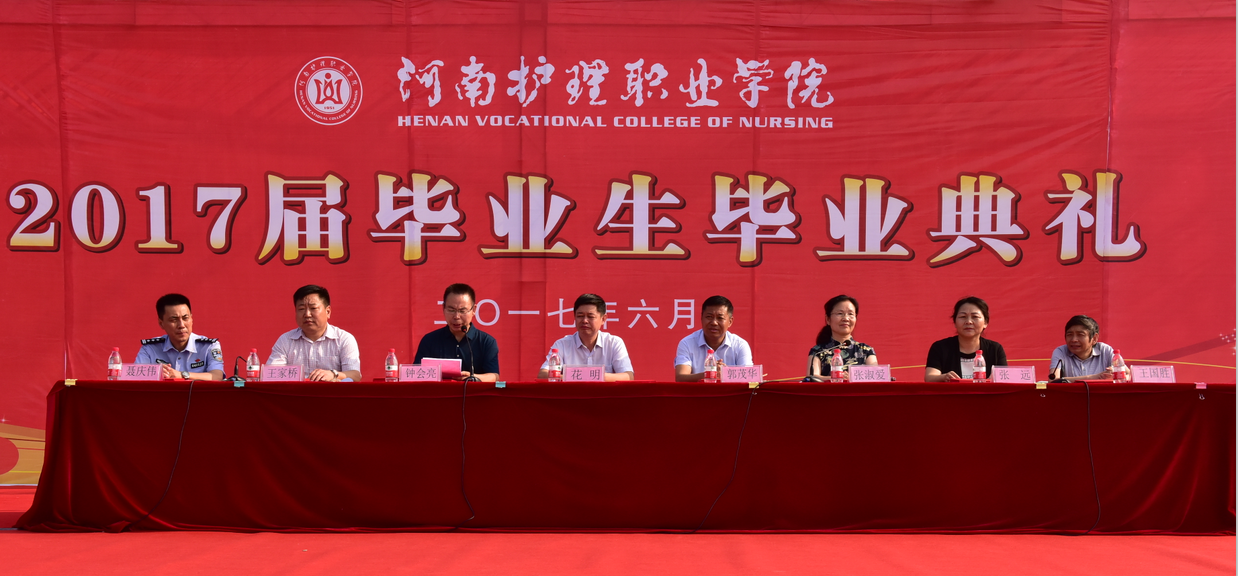 毕业典礼在雄壮的国歌声中拉开帷幕。副院长王家桥宣读了《河南省教育厅关于表彰2017年河南省优秀应届大中专毕业生的决定》,今年我院共有82名大中专毕业生被评为河南省优秀应届大中专毕业生。纪委书记张远宣读了2017届1761名大专毕业生名单。全体领导为毕业生代表颁发毕业证书。