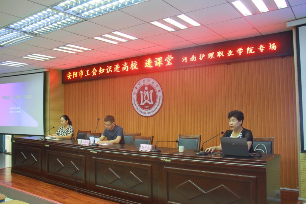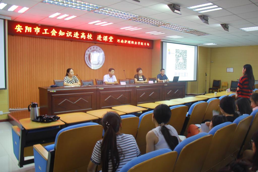 本次专题讲座由安阳市工会和我院工会组织,安阳市总工会法律部部长李海燕,安阳市教科文卫体工会干事孙文艳,河南安易律师事务所郝俊峰律师、赵君伟律师和我院工会副主席张玉枝出席讲座。学院的160余名应届毕业生听取了讲座,现场发放《大学生工会知识简明读本》、《维权典型案例》、就业信息等宣传资料200余份。