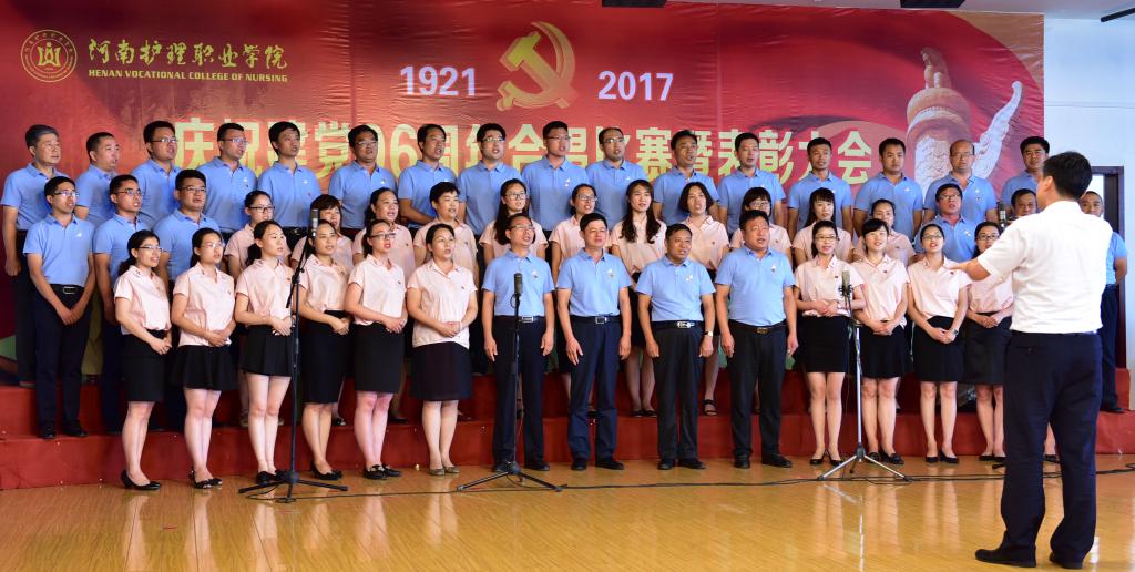 合唱比赛在护理系党总支代表队演唱的《爱我中华》中拉开帷幕。各参赛党总支代表队服装整齐、精神饱满、歌声嘹亮,将《我们走在大路上》、《团结就是力量》、《共筑中国梦》、《大中国》、《没有共产党就没有新中国》一首首脍炙人口的爱国歌曲演绎的淋漓尽致,展现了我院师生昂扬向上的精神风貌。离退休党总支代表队演唱的《共筑中国梦》,将现场气氛推向了高潮。