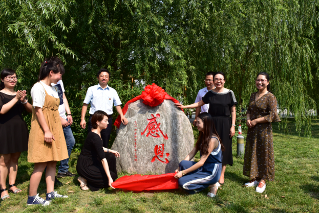 之后,何主任、王书记、康主任同毕业生代表河南省护理技能大赛一等奖获得者王会星、毕业生代表苏楠共同为“感恩”毕业纪念石揭幕。
