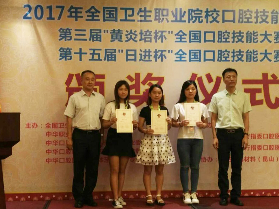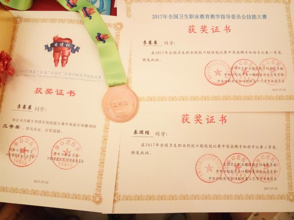7月1-2日,我院医学技术系孟琨和石娟老师带队参加第三届全国卫生职业院校“黄炎培杯”口腔技能竞赛。我院口腔医学技术专业选手李赛赛、秦团结同学沉着冷静、克服困难、精心操作,经过理论考试、牙齿雕刻、全口排牙等竞赛环节后,分别荣获雕牙和排牙比赛一等奖、二等奖,另外李赛赛同学还获得“日进杯”雕牙单项奖三等奖的好成绩。