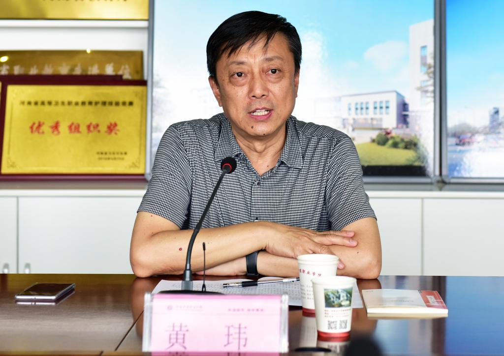 黄玮副主任对我院教学条件的不断完善、生源规模与质量的不断提高和近几年来的发展成果表示肯定,对我院为社会培养高质量医护人才的努力与付出表示赞赏。黄玮副主任指出,河南和其他省份相比,医学人才供给还远远不够,社会需求缺口还比较大,尤其是作为国家“一带一路”发展战略主要交通枢纽的中原地区,国际化是大势所趋,面对经济社会的快速发展,对卫生人才需求提出更高的要求。黄玮副主任要求,面对新的形势,学院要有国际化视野,同时,要加大对外交流,采取走出去和请进来的方式,培养高质量的师资力量,积极探索如何培养国际化高水平技术技能医护人才,以满足群众对求医问病的需求。在未来的发展过程中,要充分利用河南的区位优势,敢于抓住机遇,赢得未来。黄玮副主任表示,委党组将一如既往大力支持学院发展,希望学院越来越多的培养高质量医护人才,为中原医疗卫生事业的发展贡献力量。