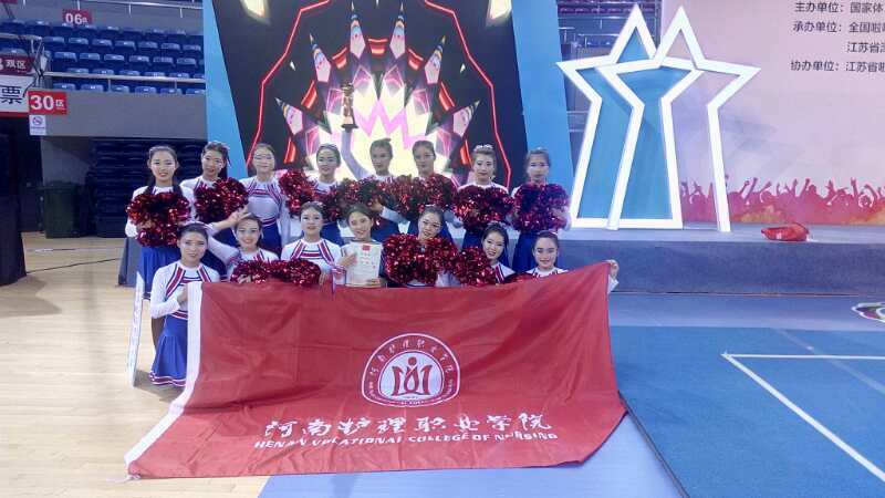 总决赛于7月16日在溧阳市奥体国际花园体育馆盛大开幕,来自北京、上海、天津、江苏、广东等20多个省、自治区、直辖市,共计261支代表队、近6200人参加了本次大赛。由18名学生组成的“青春之歌”啦啦操代表队凭借着不懈努力和聪颖天资在总决赛中再次脱颖而出,并最终取得了全国总决赛非专业组规定动作和自选动作两项亚军的优异成绩。赛场上,她们鲜艳整齐的服装,热情洋溢的笑脸,强劲动感的舞姿,精湛完美的技巧,尽情挥洒,全力以赴,不仅带来了一场精彩绝伦的视觉盛宴,体现了力与美的完美结合,诠释了啦啦操运动的独特魅力,也发扬了团结一致、奋发向上的体育精神,展现了护理学院青春闪耀的亮丽风采,彰显了护院人不畏艰难、顽强拼搏、开拓创新、追求卓越、精益求精、勇攀高峰的精神。