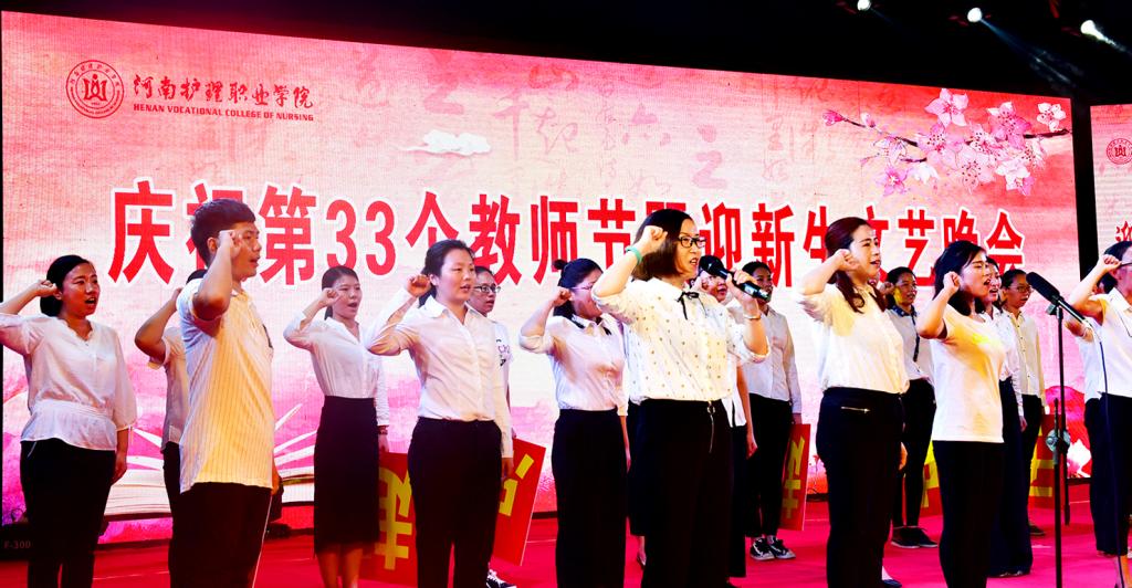 歌舞曼妙,曲笛悠扬,一支支荧光棒将晚会现场点亮成一片星海。开场舞《盛世花开》热情洋溢,迅速点燃现场;40余名新教师“我志愿做一名光荣的人民教师……严谨治学,启智求真,为人师表,乐于奉献……”的宣誓声响彻云霄;歌曲《小小》、《喜欢你》、《海阔天空》、《笑忘书》、《最美的歌儿唱给妈妈》、《红歌联唱》令人沉醉;舞蹈《街舞串烧》、《凉凉》展示着青春的活力;富有深情的诗朗诵《致橡树》表达了新一代大学生的自尊自爱;《护理礼仪展示》用每一个细节传递着爱与温暖;《啦啦操表演》彰显了河护人不畏艰难,精益求精,勇攀高峰的精神;快板《三打白骨精》让我们重温了经典;《乐器联奏》给大家带来了中西结合的听觉盛宴。