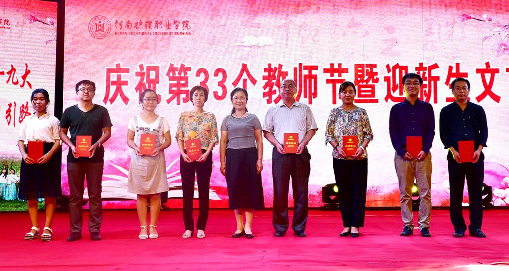 在热烈的掌声中,2016年度全省卫生系统安全生产先进个人、2017年全国啦啦操竞赛优秀教练员、2017年河南省康复治疗技术专业技能竞赛优秀指导教师、2017年全国卫生职业院校口腔技能大赛优秀指导教师、2017年学院最美教师及30年教龄、工龄教师依次登上舞台,接受学院领导的颁奖和全体师生的祝贺。
