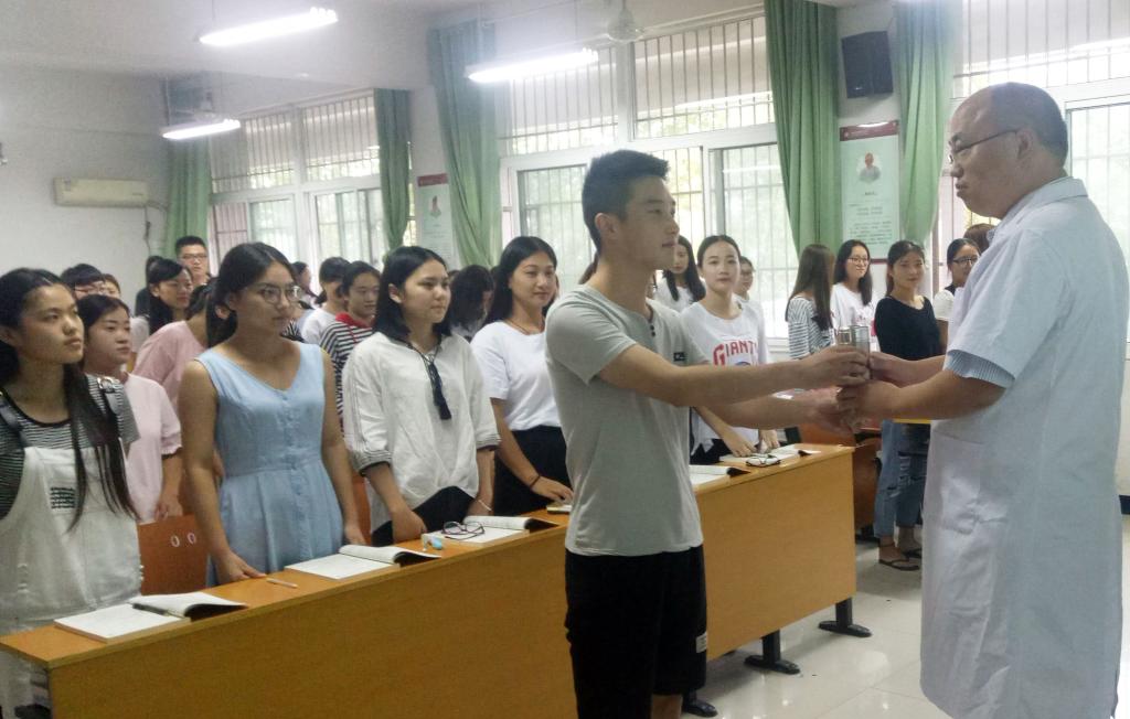 为了迎接第33个教师节,培养学生尊师重教,学会感恩,心系师恩的优秀品格,9月8日,护理系开展了为期一天的“我为老师倒杯水”感恩教师节活动。本次活动分两个板块,17级新生正值军训期间,开展了“我为教官倒杯水”活动;16级学生在班级上课期间,为每位任课老师进行了感恩倒水活动。