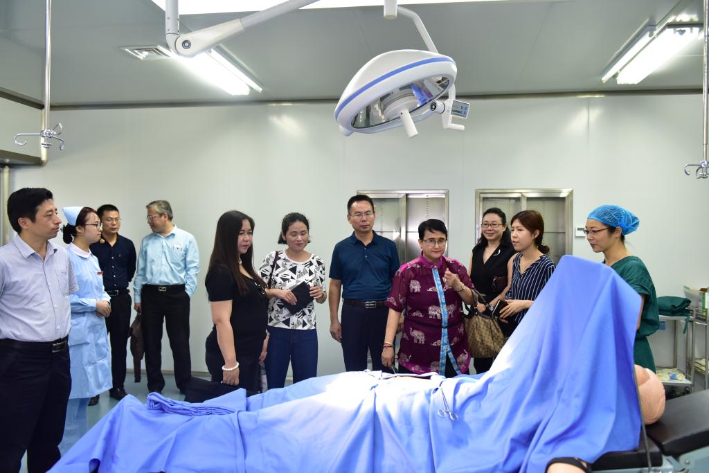 菲律宾莱西姆大学一行四人在钟院长和护理系领导的陪同下先是参观了重症监护实训室、高级生命支持实训室、情景化模拟考核室、模拟手术室等,对我院的实训设施表示赞赏,对美丽的校园环境表示惊叹。