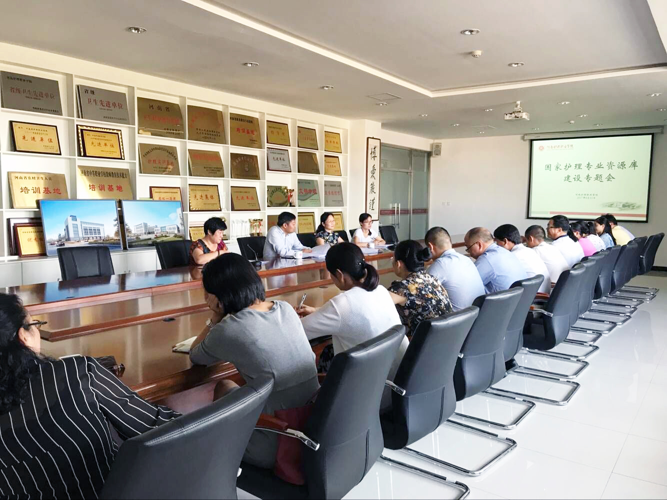 近期,我院在二楼大会议室召开了2017年国家护理专业资源库建设专题会议。院长郭茂华出席会议并讲话,副院长张淑爱、教务处、三系三部主要负责人及相关教研室主任参加会议。会议由副院长张淑爱主持。