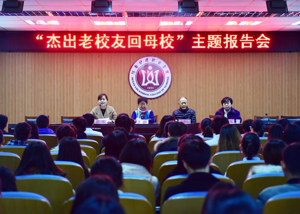 按照河南省教育厅关工委的统一安排,11月21日下午四点半,由学院关心下一代工作委员会主办的“杰出老校友回母校”主题报告会在基础实训楼学术报告厅举行。学院关工委成员代表王秋海出席会议,我院退休老教授周凤清和安阳县第二人民医院副院长李淑梅两位老校友应邀请作专题报告。学院离退休职工工作处副处长陈方主持报告会,来自全院各班的200多名学生代表在现场聆听。
