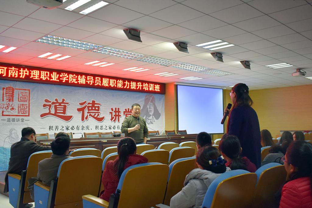 11月29日下午,学院邀请河南省首届“大美学工”十佳优秀学生工作者、平顶山工业职业技术学院学生处处长匡予生老师来我院就辅导员工作能力、学生管理与服务作报告。学生处、护理系、医技系、药检系学生管理相关负责人及学院全体专兼职辅导员80余人参加。报告会由学生处处长李艳芳主持。