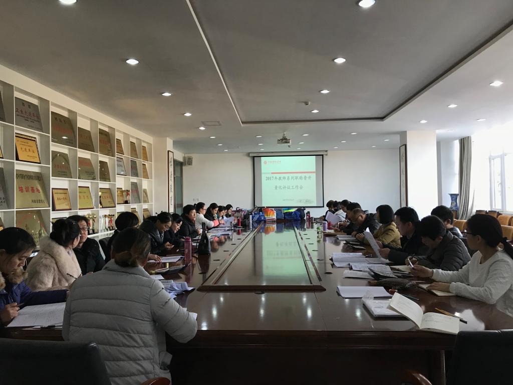 12月6日下午,教务处在学院第一会议室组织召开了我院2017年教师系列职称晋升量化评议工作会议。教务处处长朱秀敏,各量化评分小组成员及纪检监察室人员参加会议,会议由朱处长主持。