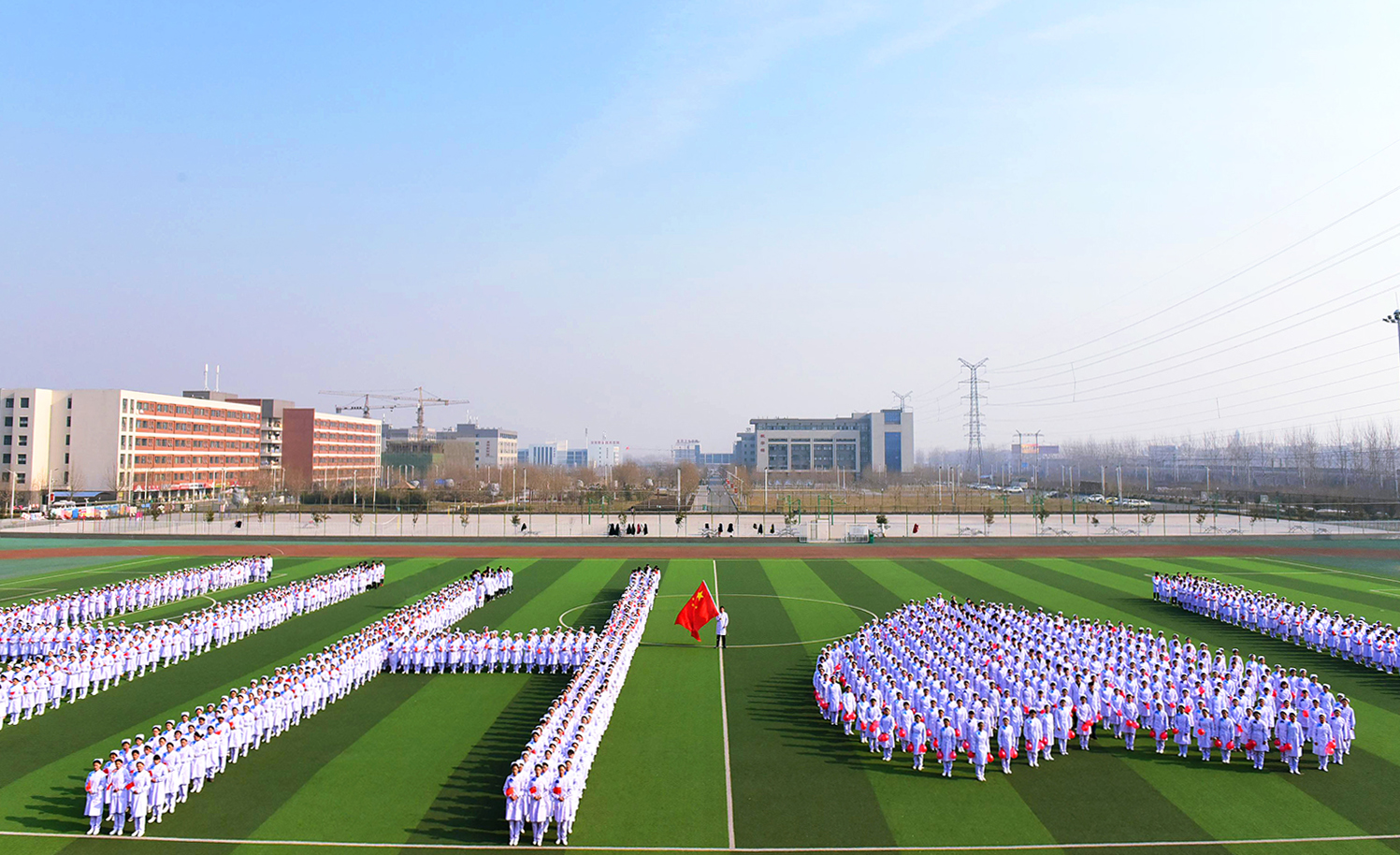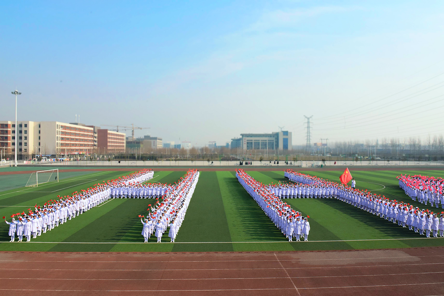 2018名学生精准站位,组成“I❤H H”字样,意为:“我爱河护”。在80个班级学生的积极响应和全力配合下,经过数十日的精心排练,一首首满腹深情的歌曲、一段段打动人心的旋律破茧而出。合唱以《我爱你,中国》开场,唱出了星空XK体育师生对党和国家的无比热爱、无比崇敬之情,也唱出了全院师生坚定不移跟党走的信念和决心;“中国式”问好将合唱推向高潮,一声声“中国好,健康中国,我的责任;中国兴盛,我的责任”汇成一道道铿锵激越的声音洪柱,迸发出奋力实现中国梦的澎湃激情;每一名成员用青春之声演唱着耳熟能详的校园歌曲,《同桌的你》《北京东路的日子》,手中挥舞着红旗,怀揣着对校园生活的美好体味,承载着无数的青春梦想;改编后的河护版《成都》唱出了每一个河护人的情怀,给寒冷的冬日带来暖暖春意。