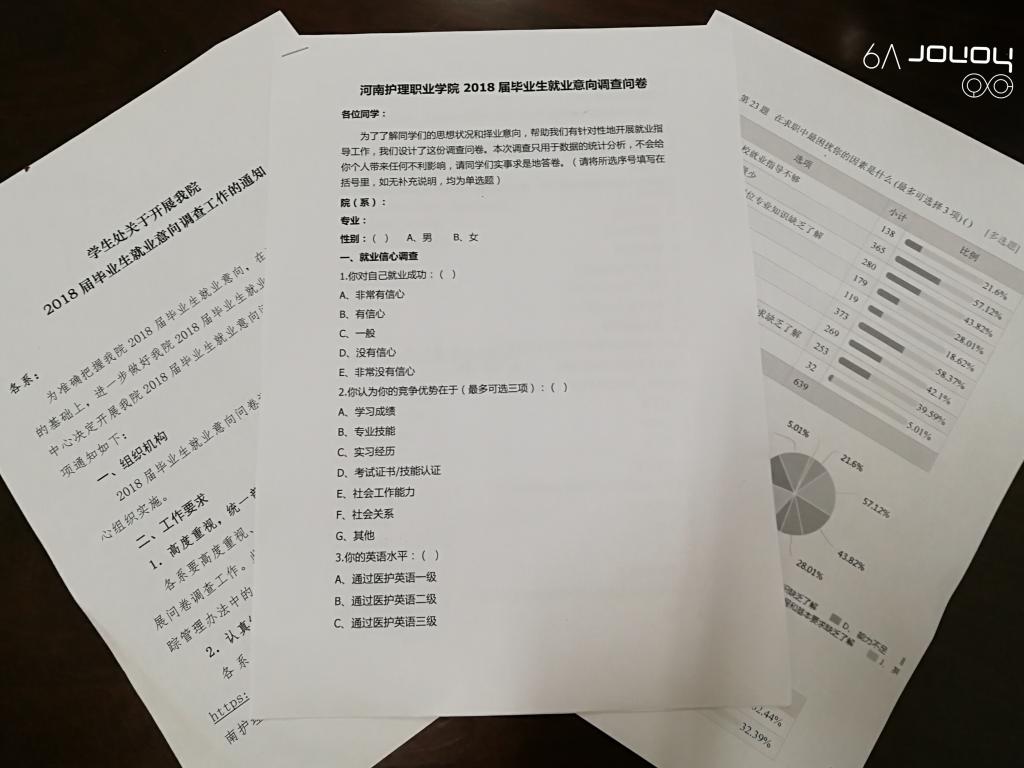 学生处就业指导中心共收到答卷639人次,占到2101名2018届大专毕业生的30.41%。下一步,学生处就业指导中心将对问卷进行详实的统计分析,形成就业意向调查分析报告,为推动我院2018届毕业生就业工作打下良好的基础。