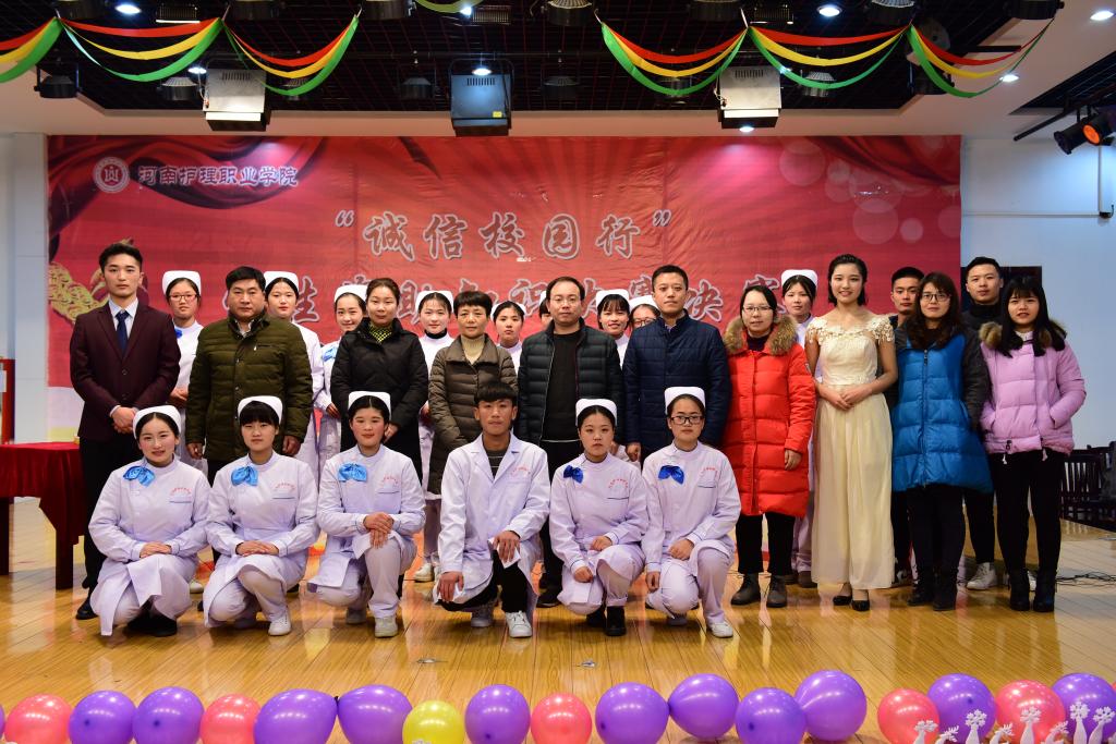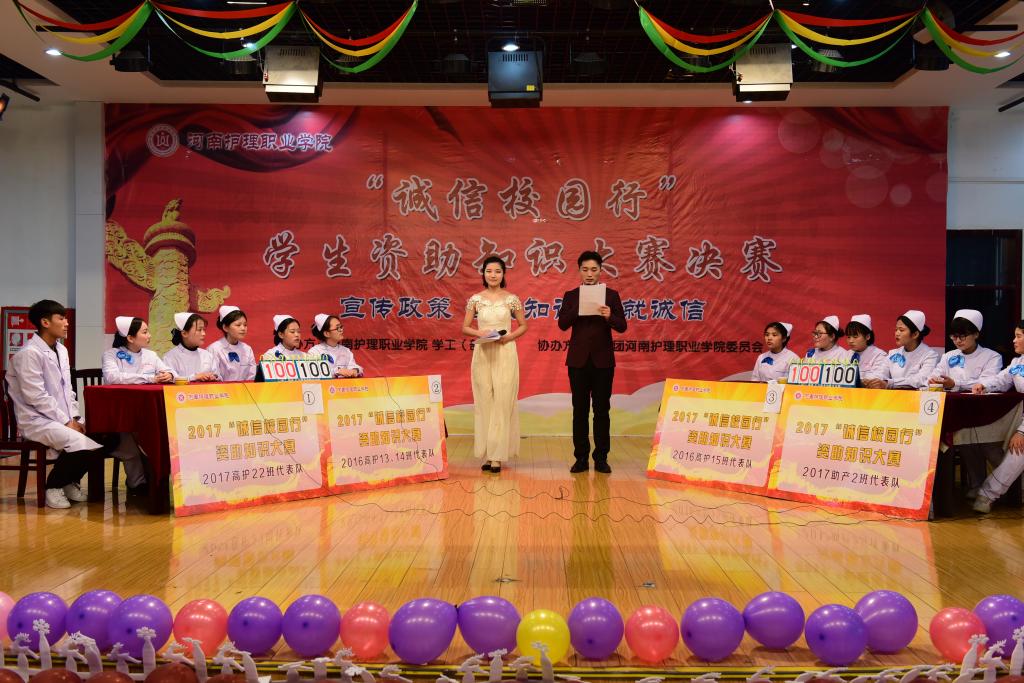 为宣传学生资助政策、普及金融基础知识,培养大学生的诚信意识和观念,防止不良“校园网贷”等金融诈骗现象的发生,进一步促进诚信校园建设,1月17日下午,由我院学生工作部(处)主办,院团委协办的“诚信校园行”学生资助知识大赛决赛在职工餐厅四楼举行,学生处处长李艳芳、药检系书记常慧敏、医技系书记窦俊峰、思政部主任张艳林、院团委书记陈亮及参赛指导老师与现场200余名学生一起观看了比赛。