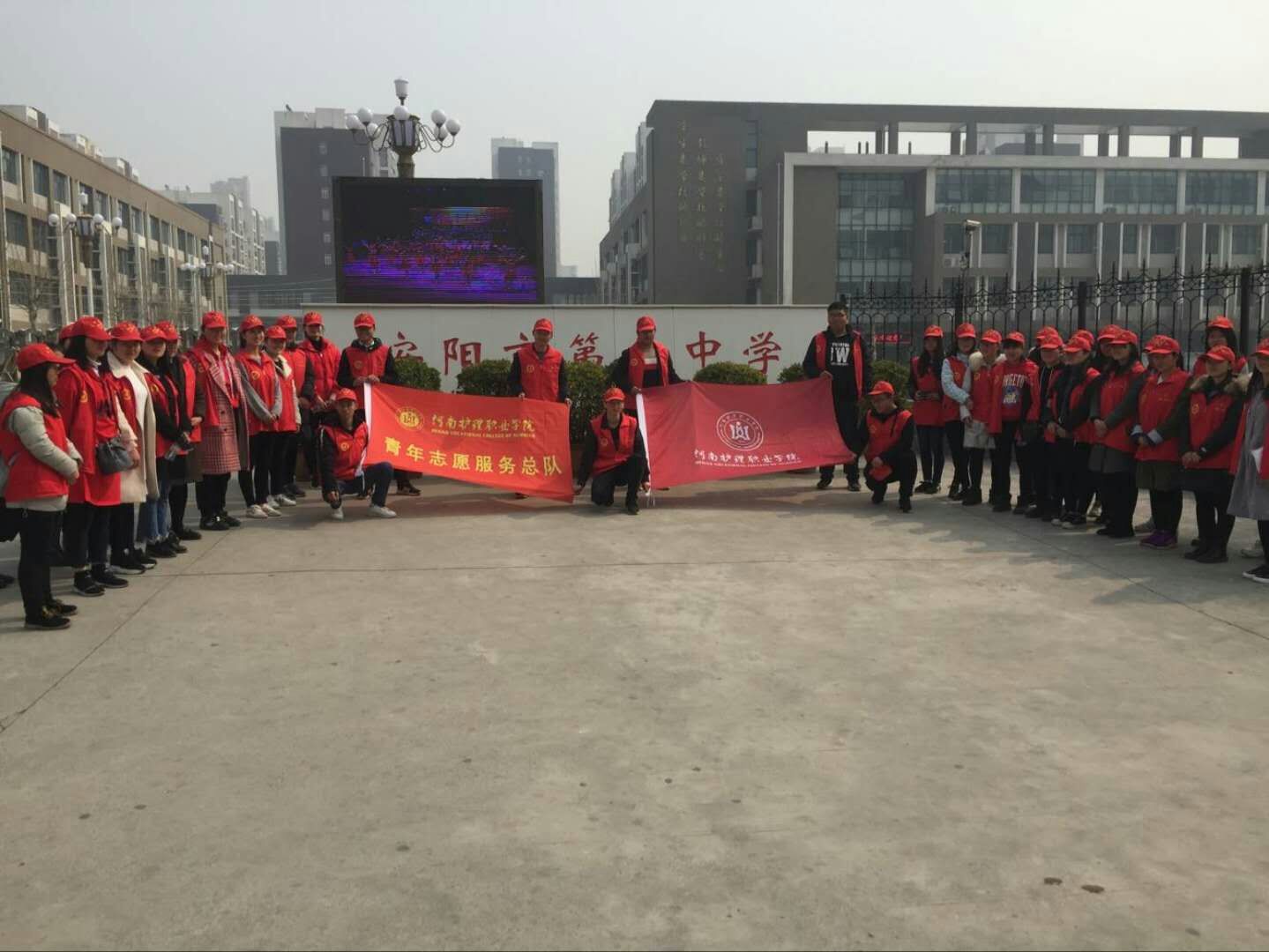 3月10日上午,我院百余名志愿者参加了安阳首届青少年立体植绿节活动。他们穿着红马甲,将种有绿植的托盘搬运到安阳市第八中学楼顶。志愿者们配合紧密、动作利落,现场气氛热烈。短短一个多小时,他们在楼顶栽种绿色植物就超过500平方米,为美丽安阳建设打造了一道亮丽的风景线。