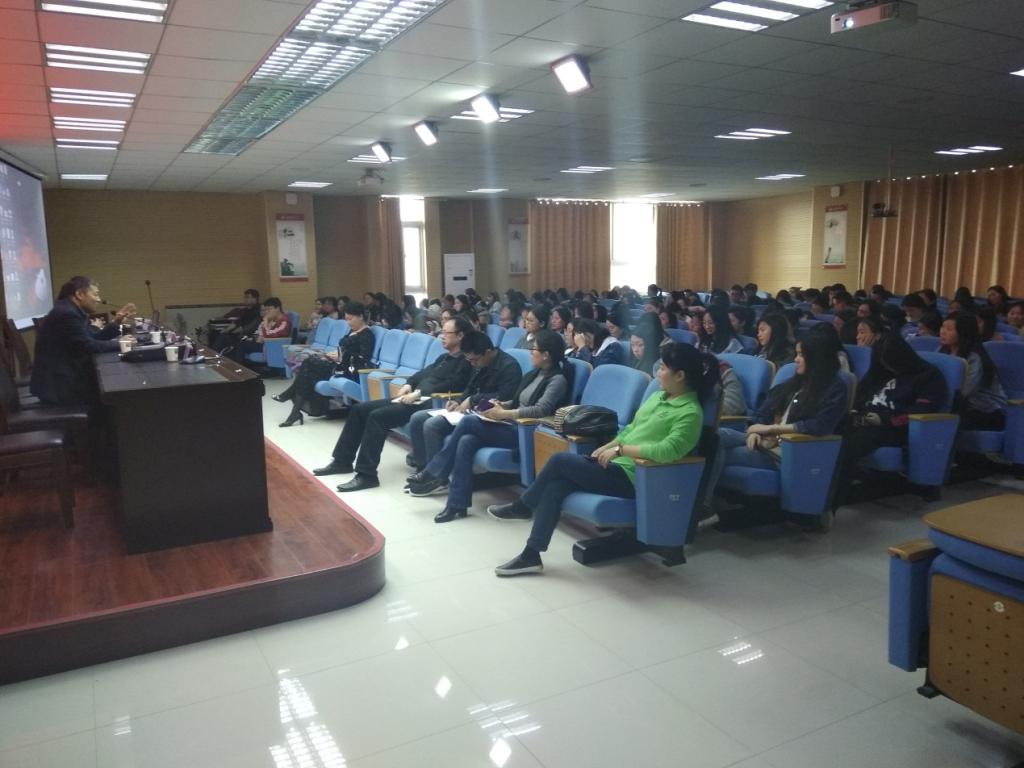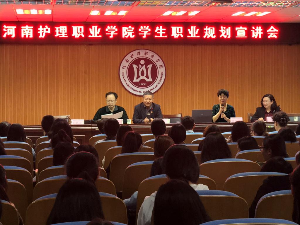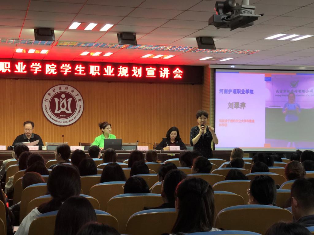 4月17日下午,我院2016级涉外护理专业学生职业发展规划宣讲会在我院学术报告厅举行。院长郭茂华、北京万极咨询有限公司董事长董永洁、北京华美护联教育咨询有限公司总经理楼庆红、护理系主任何敏、护理系党总支书记王昆仑、涉外教研室全体教师和2016级涉外护理全体学生参加会议。会议由护理系主任何敏主持。
