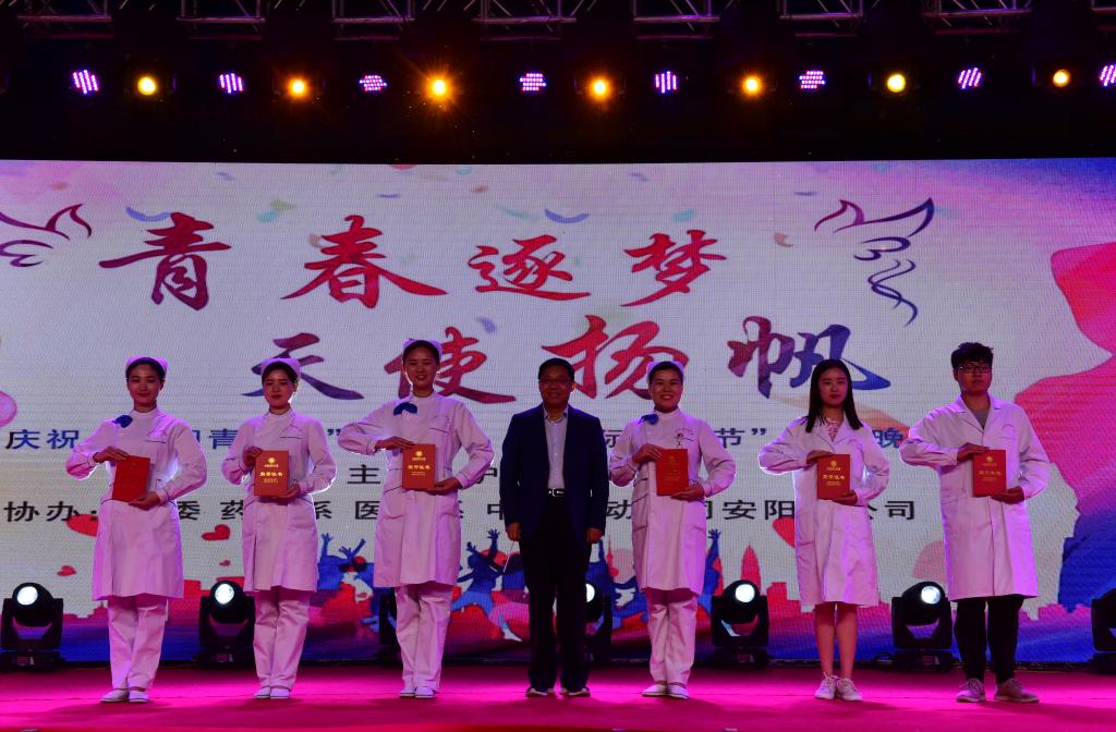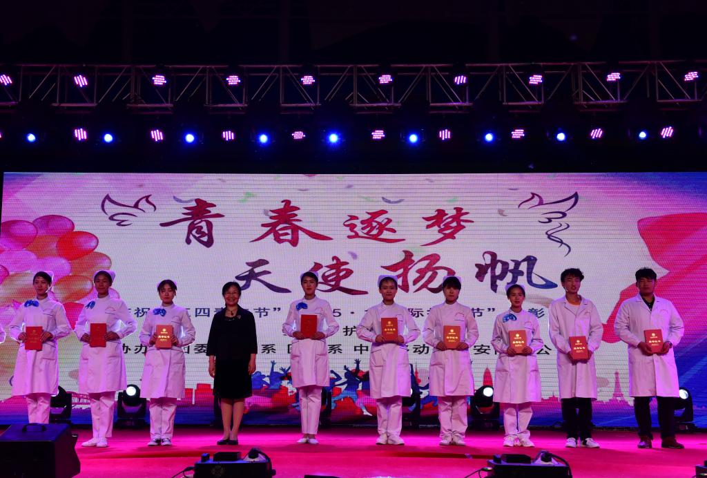 花香醉五月,青春奋进时,五四青春逐梦,白衣天使扬帆。5月10日晚,我院在学院体育场举行了庆祝第69个“五四青年节”暨第107个“5·12国际护士节”表彰晚会。院领导杜天信、郭茂华、胡景团、钟会亮、张淑爱、王家桥、张远出席晚会,学院全体师生观看晚会。