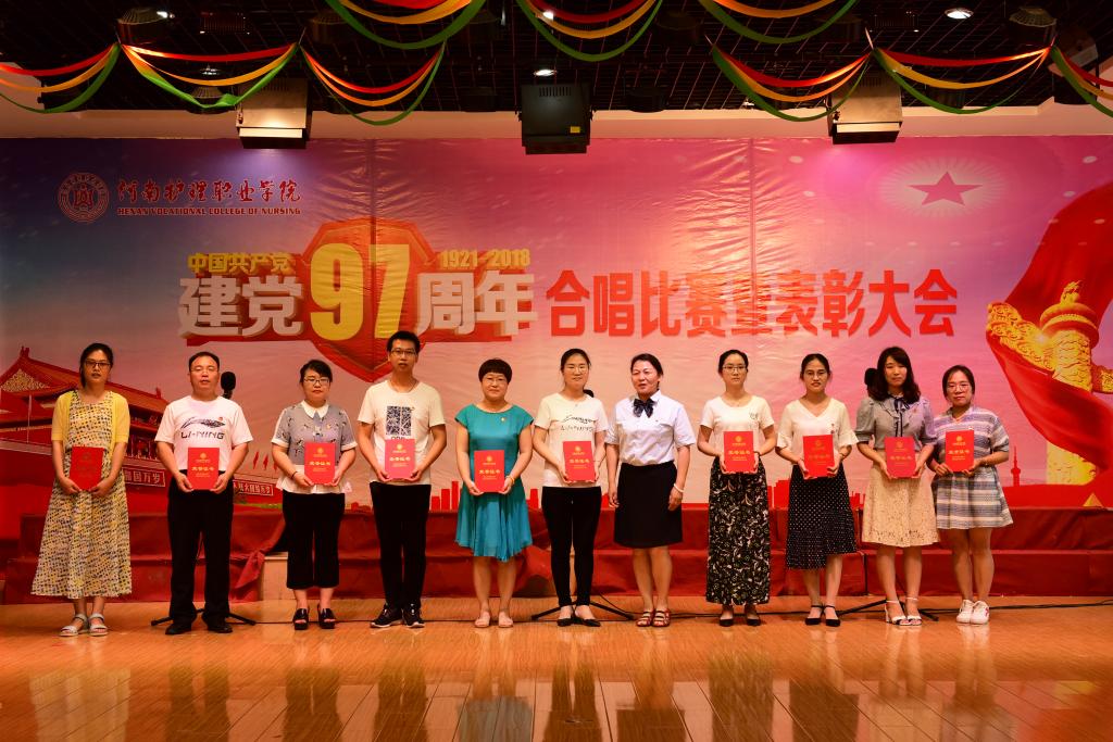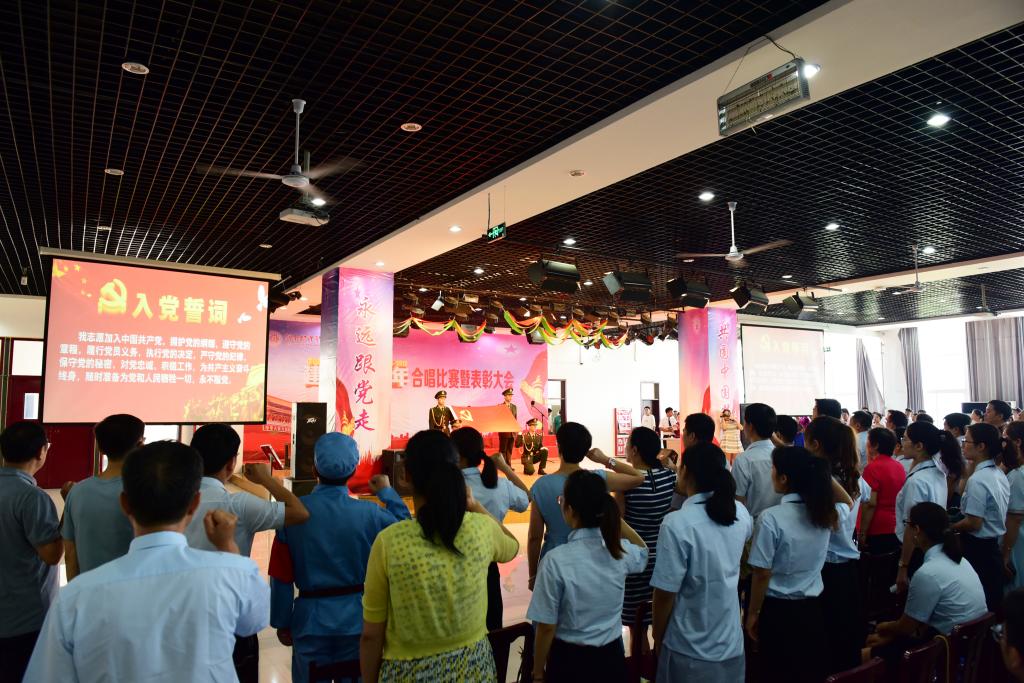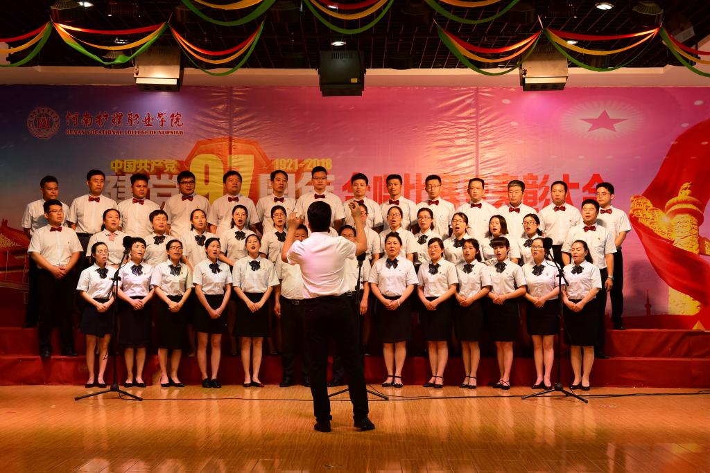 百年传承,薪火相继。为庆祝中国共产党成立97周年,颂扬党的光辉历史,缅怀党的丰功伟绩,深入贯彻落实习近平新时代中国特色社会主义思想和党的十九大精神,6月27日下午,我院在多功能厅举行庆祝中国共产党成立97周年合唱比赛暨表彰大会,进一步动员各级党组织和广大共产党员,牢固树立“坚决听党话,永远跟党走”的思想信念,以更加饱满的工作热情、更加振奋的精神状态、更加务实的工作作风,扎实推进学院各项事业稳步前进。院领导胡景团、钟会亮、张淑爱、王家桥、张远出席大会,全体党员、部分教职工和学生参加了大会。