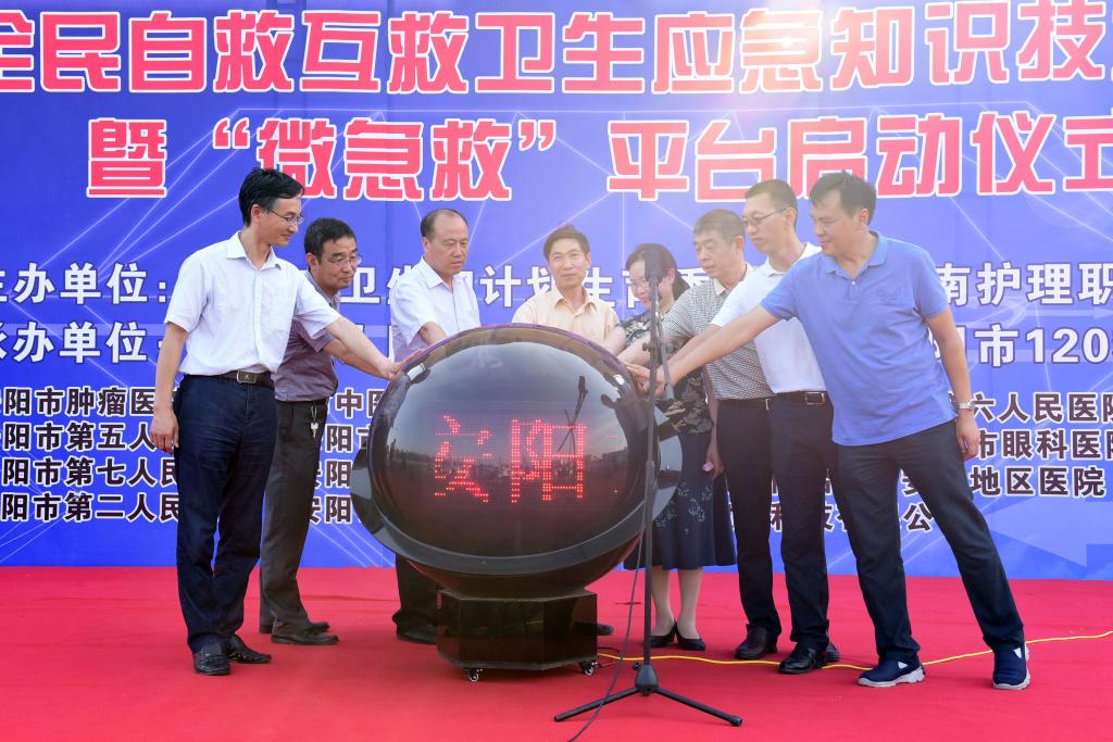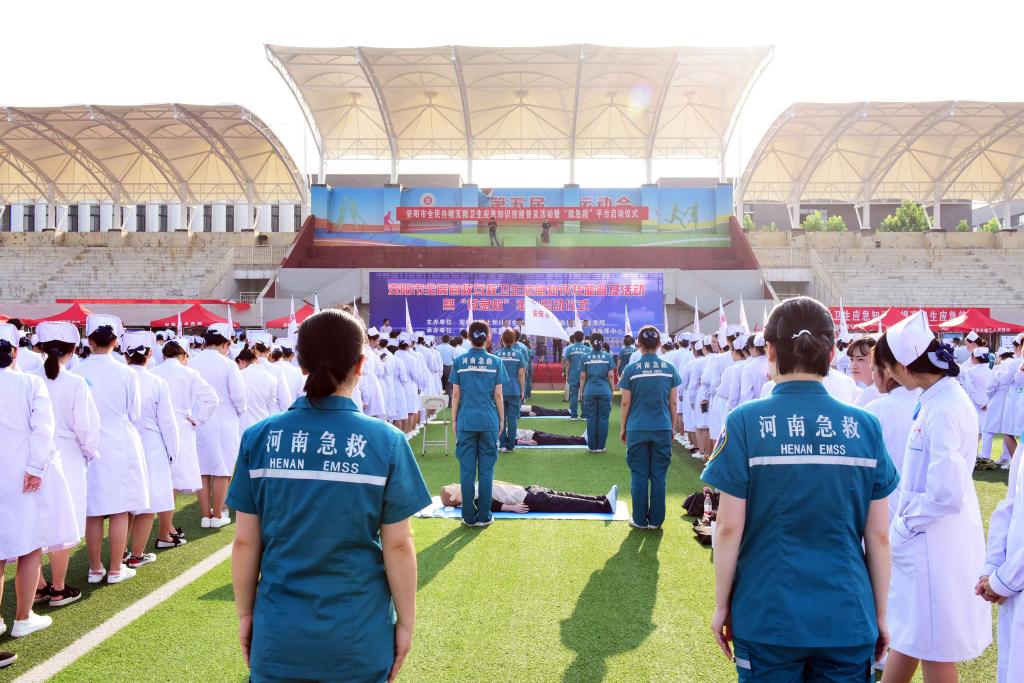 为贯彻落实河南省卫生计生委和市委、市政府关于卫生应急文化建设的相关要求,提升公众健康素养,增强自救互救能力,营造良好的舆论氛围和社会环境,6月27日,由安阳市卫健委和我院共同主办的安阳市全民自救互救卫生应急知识技能普及活动暨“微急救”平台启动仪式在学院体育场举行。