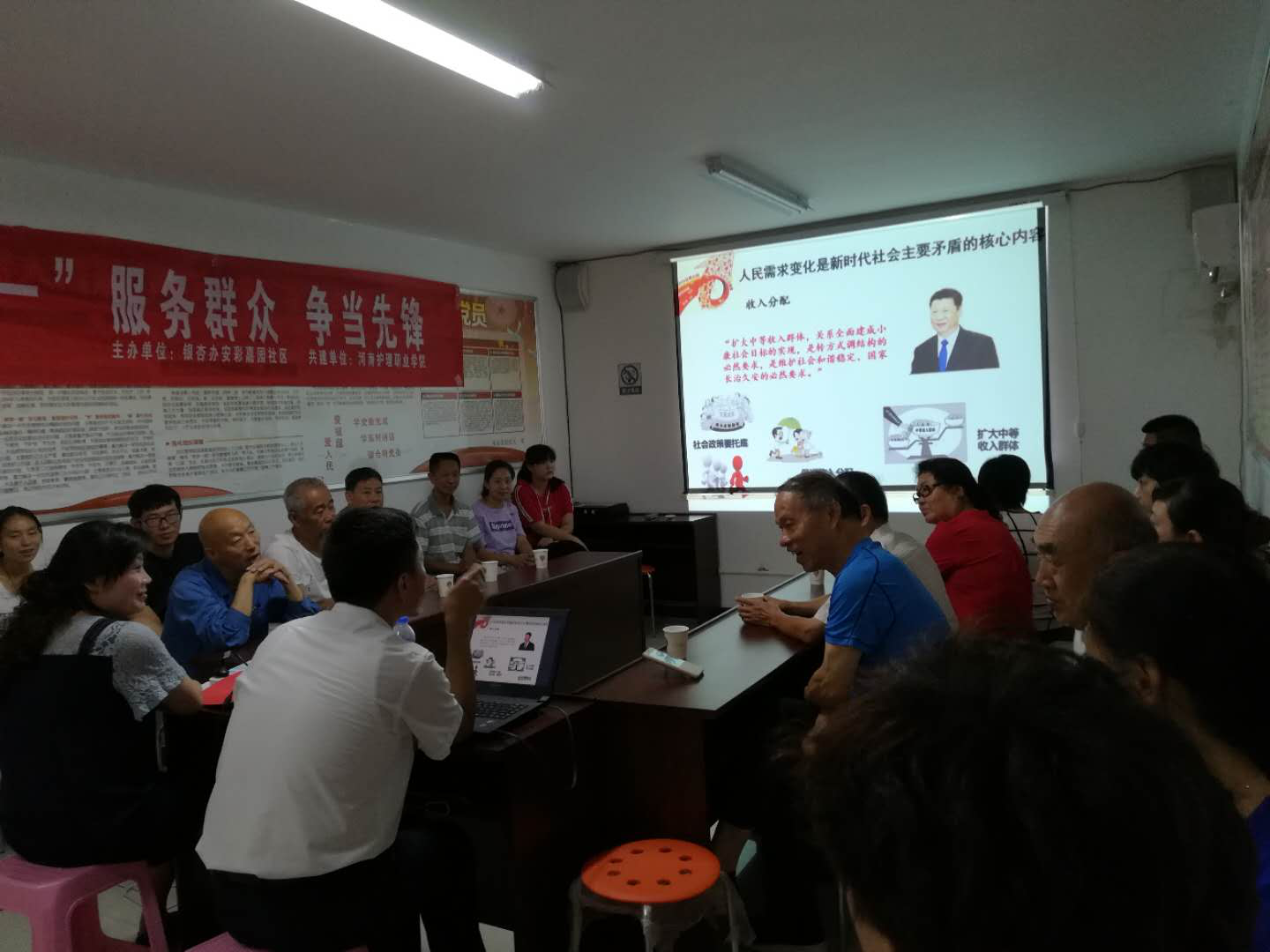 继而,学院团委书记以“感受古都安阳新变化,决胜小康圆梦新时代——从我国社会主要矛盾变化看发展成就”为题为社区党支部分享学习党的十九大精神体会。改革开放四十年来特别是党的十八大以来,城市发展变化让普通老百姓有了更多发展获得感,社区居民生活发生更多可喜变化,这都是国家发展变化的一个缩影。