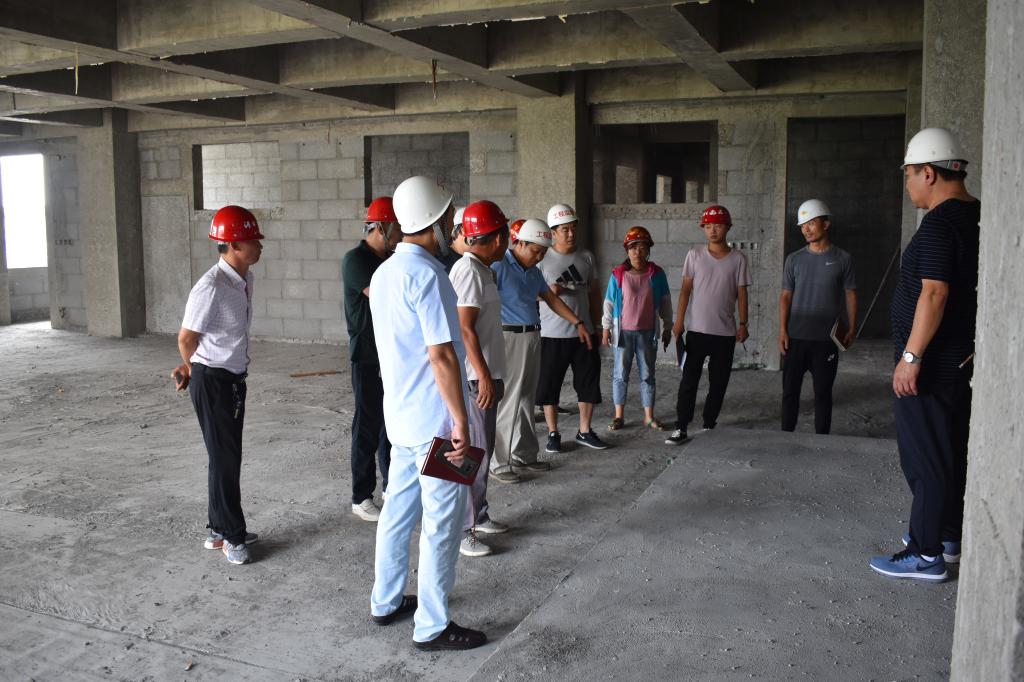 在3#实验楼和多功能厅施工现场,郭院长一行听取了施工方和监理方关于项目进展情况的汇报,实地检查工程施工质量、进度和安全,详细了解施工中存在的问题和困难,提出了指导意见和解决对策。