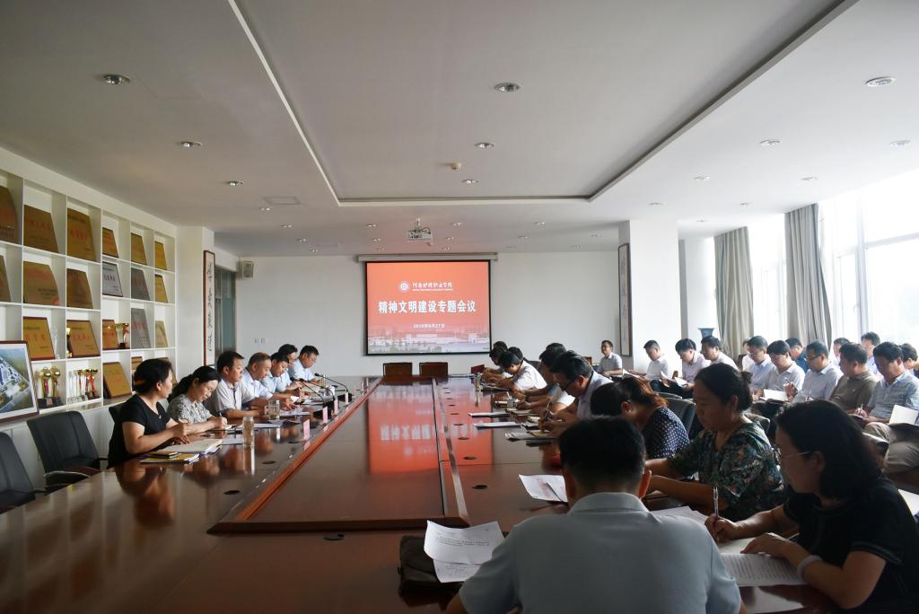 8月27日下午,我院召开精神文明建设专题会议,安排部署省级文明单位年度复查工作。学院领导杜天信、郭茂华、胡景团、钟会亮、张淑爱、王家桥、张远出席,全体中层干部参加会议。会议由党委书记杜天信主持。