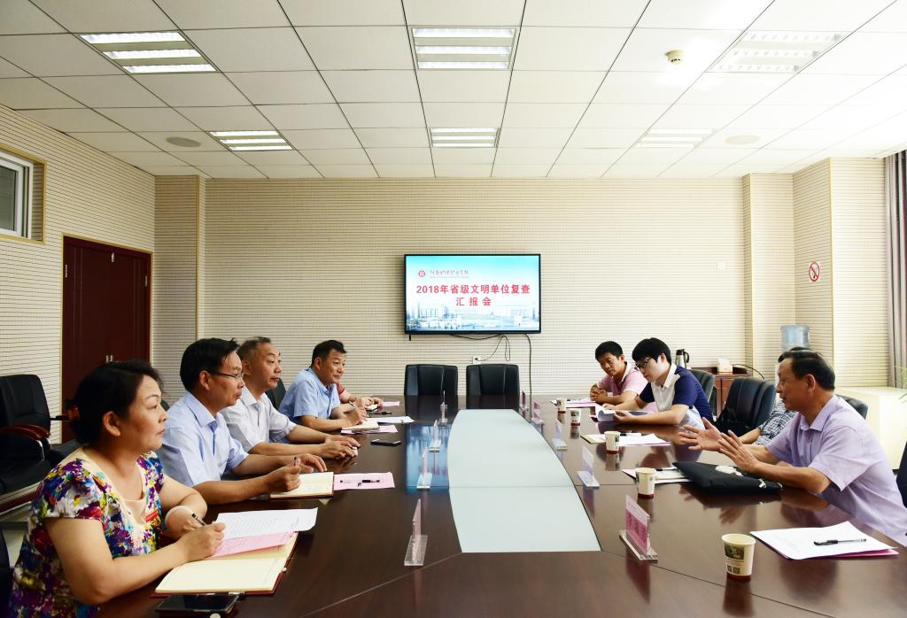 9月4日上午,在组长李文涛主任、市文明办副主任刘金海的带领下,市文明办省级文明单位年度复查工作组莅临我院,对学院的文明单位建设工作进行年度复查。高新区文明办周卫东陪同检查。