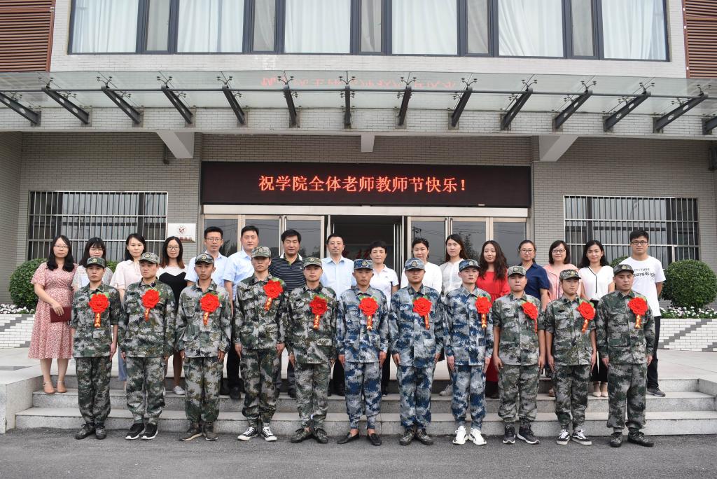 临别之际,11名大学生士兵与辅导员老师依依惜别,并送上了教师节的祝福。