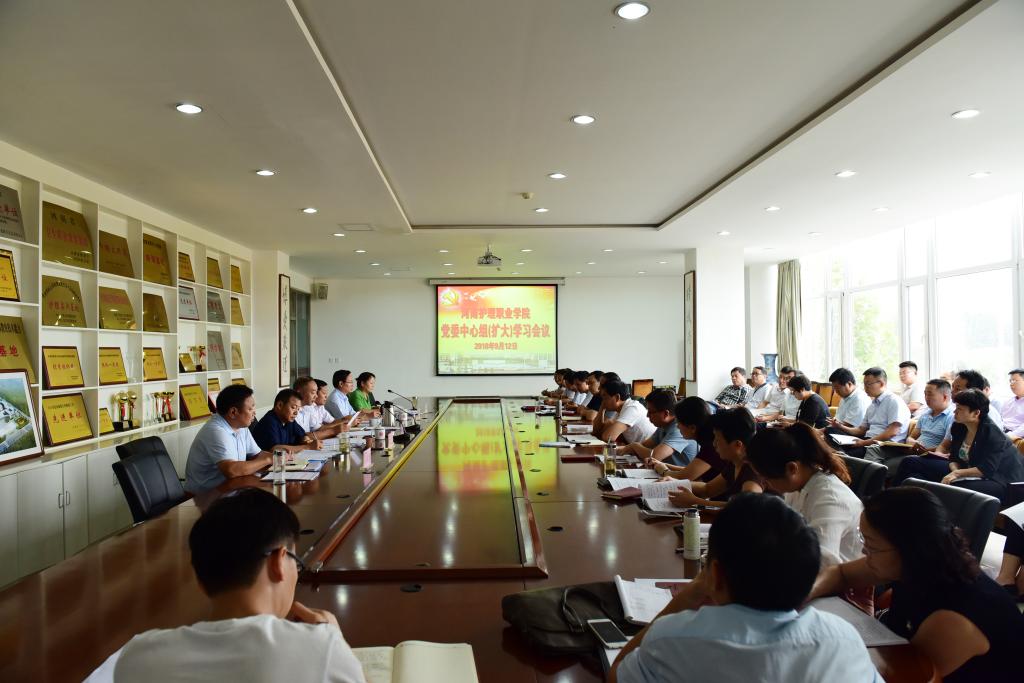 党委副书记、工会主席胡景团传达了《习近平总书记在全国宣传思想工作会议上的讲话精神》、《习近平总书记在全国教育大会上的讲话精神》以及河南省委高校工委、河南省教育厅《关于认真学习宣传贯彻陈润儿同志省教育厅讲话精神的通知》;纪委书记张远领学了中共河南省卫生计生委党组关于印发《严明政治纪律和政治规矩开展整治“帮圈文化”专项排查工作方案》的通知、中共河南省卫生计生委党组关于印发《开展违反中央八项规定精神问题专项整治工作方案》的通知并详细解读了新修订《中国共产党纪律处分条例》。