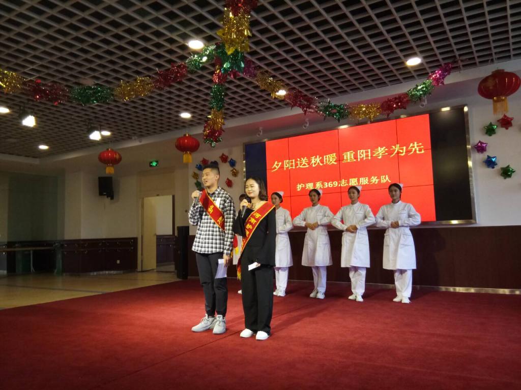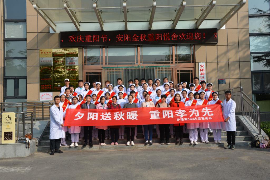 九九重阳节,浓浓敬老情。在重阳节到来之际,为继承中华民族尊老爱老的优良传统,让老人们时刻感受到社会大家庭的温暖与关怀,在护理系学生管理党支部全体党员和青年志愿者的精心策划和统筹安排下,10月17日下午,我系369志愿服务队走进安阳金秋重阳悦色养老公寓,开展“夕阳送秋暖,重阳孝为先”为主题的志愿活动,为老人们带去纯真的关怀和温馨的祝福。