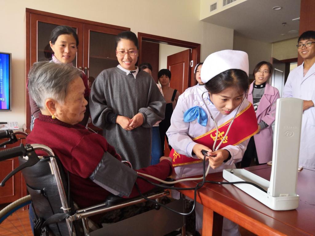 活动中,青年志愿者们发挥自己专业优势与特长积极为老人量血压,为老人捶背,与老人促膝交谈,听老人讲自己的故事,与老人分享新时代的幸福生活,说说笑笑甚是温暖!同学们精心准备的《洗手舞》《军港之夜》《清平调》《打靶归来》等节目,老人们不禁纷纷用手打起了拍子,跟着唱了起来,敬老院里暖意融融,欢笑声此起彼伏。幸福的时光总是短暂的,从老人们流露出的眼神中看到了内心的温暖,拉着同学们的手久久不放开。