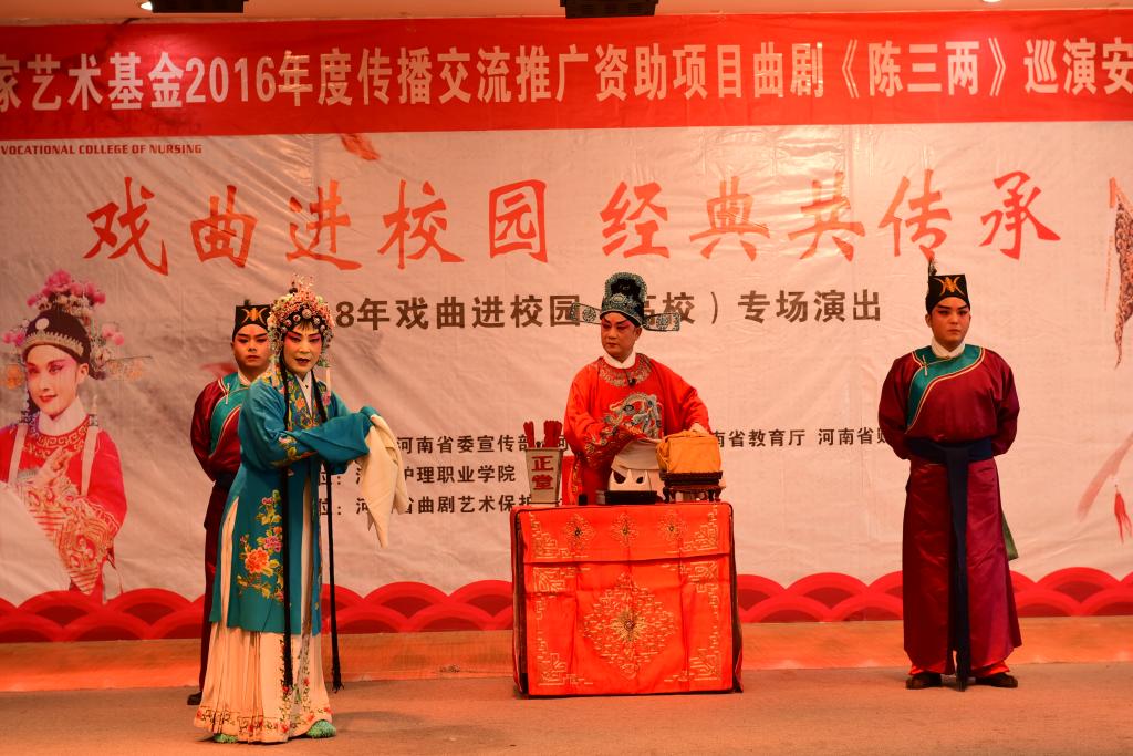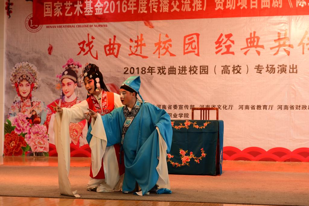 为培育和弘扬社会主义核心价值观,传承中华优秀传统文化,不断增强广大师生的文化自信和文化自觉,10月23日,我院特邀河南省曲剧艺术保护传承中心来院做专场演出。学院部分中层干部及400余名学生代表现场观看了演出。