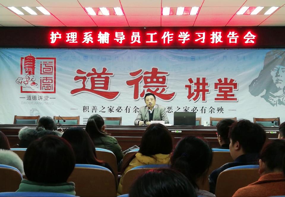 为促进护理系各辅导员工作学习进步,切实提高辅导员的工作管理水平,提高辅导员工作和生活的幸福指数,11月28日下午护理系在学术报告厅召开了辅导员工作学习报告会。会议由护理系党总支书记王昆仑主持,护理系16、17、18级专兼职辅导员老师及学生代表200余人参加会议。